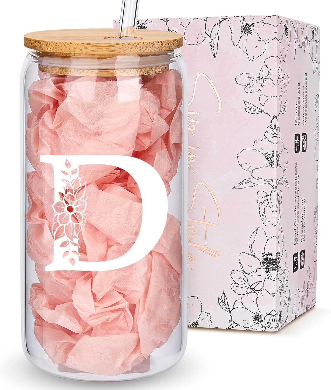 - HIGH-QUALITY AND DURABLE: This floral monogrammed glass cup is made of high borosilicate glass, ensuring it can withstand high and low temperatures without cracking easily.
