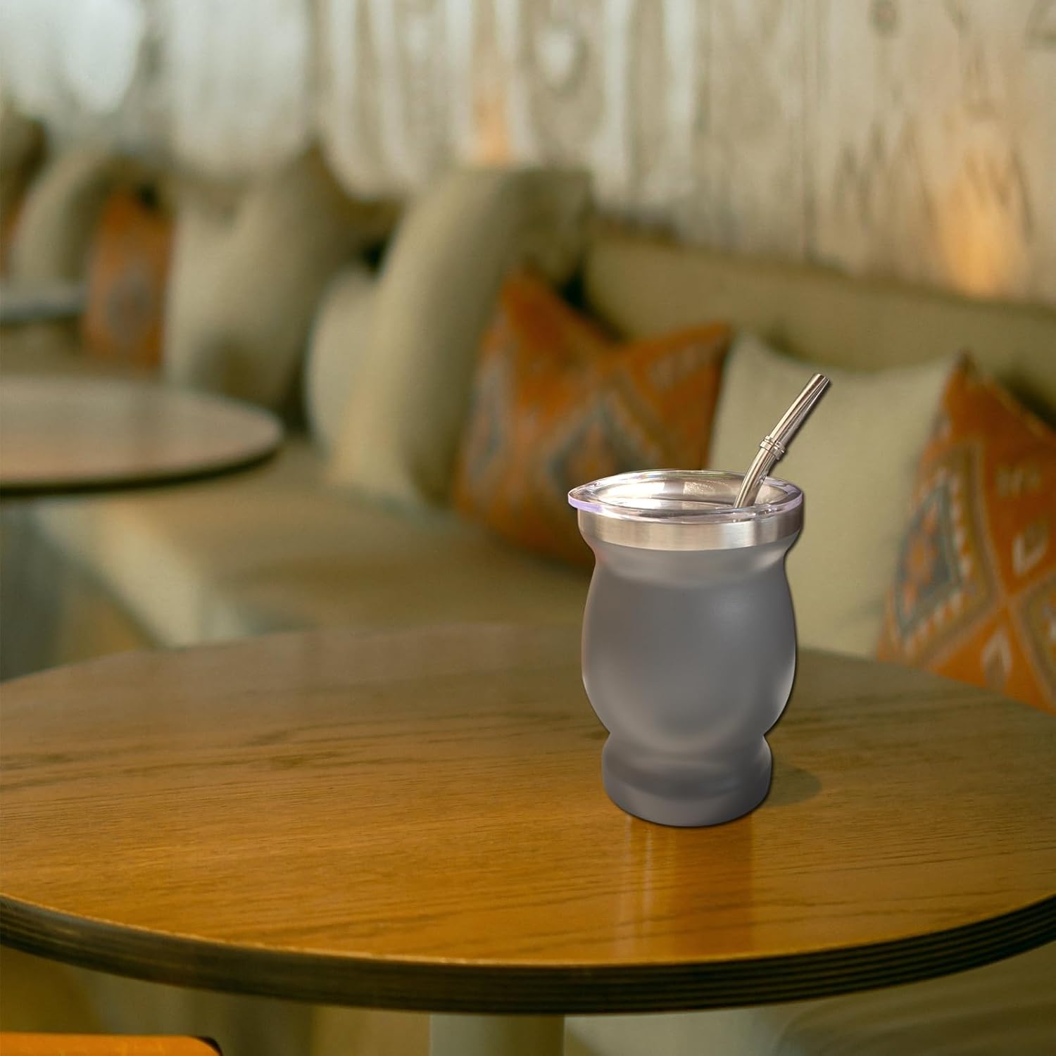 Beruth Bombilla Yerba Mate Gourd, 8oz Stainless Steel Tea Cup Set with a Multifunctional Lid, Two Straws and Cleaning Brushes, Double Walled Coffee Mug Heat Insulation Anti Scalding (Starry Sky Grey)