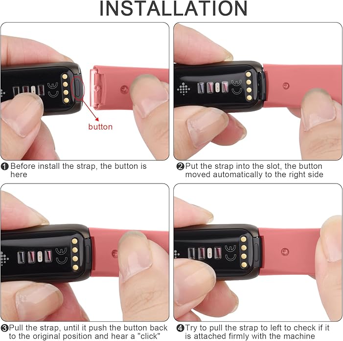 • 【Easy to Install and Remove】: Push Button Design same as original band makes it easy to put on & off. Just gently push the luxe band to put on and press the button to remove. No pins, NO tool required. The bands will lock onto your fitbit luxe fitness tracker precisely and securely.