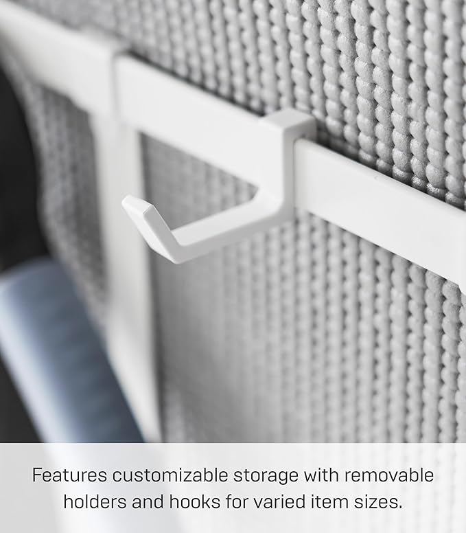 Yamazaki Home Tower Rolling Slim Fitness Rack With Adjustable Holder, Casters, Hooks For Gear Organization - Steel
