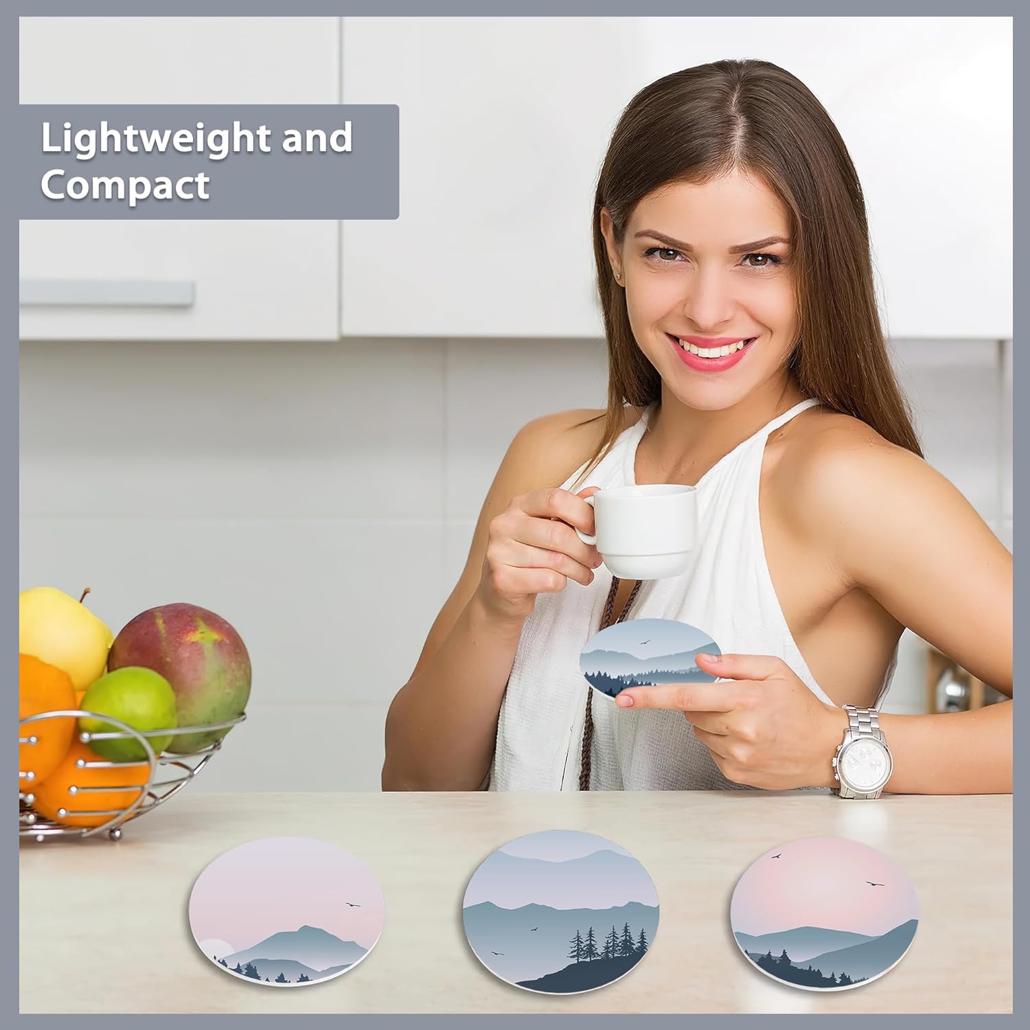 - 【Non Slip & Easy Clean】The coasters are smooth to the touch and measure 4 inches making it perfect for any beverage cup. Now you can confidently place your wet drinks or hot beverages on your coffee and dining tables. Simply clean them with a damp cloth and wipe them off within seconds.