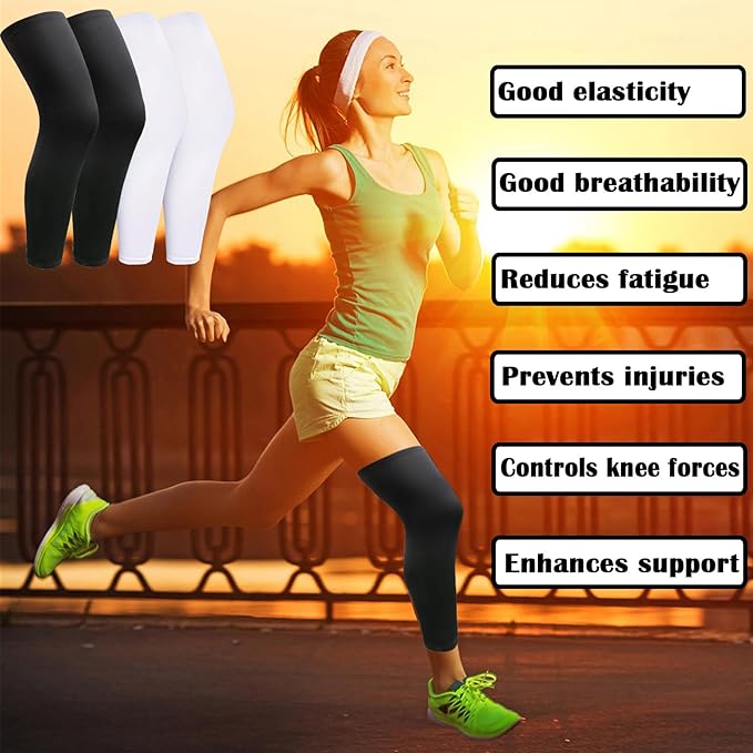 • Package Includes: You will receive 2 pairs leg compression sleeves, 1 pair black and 1 pair white, which are enough for your daily use and replacement. Our full leg compression sleeves for men women are available in 5 sizes for you to choose from, S, M, L, XL, 2XL, whether you are a man or woman, you can always find the right size