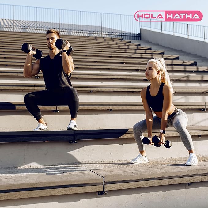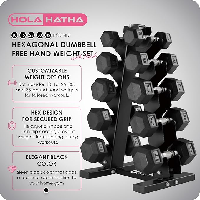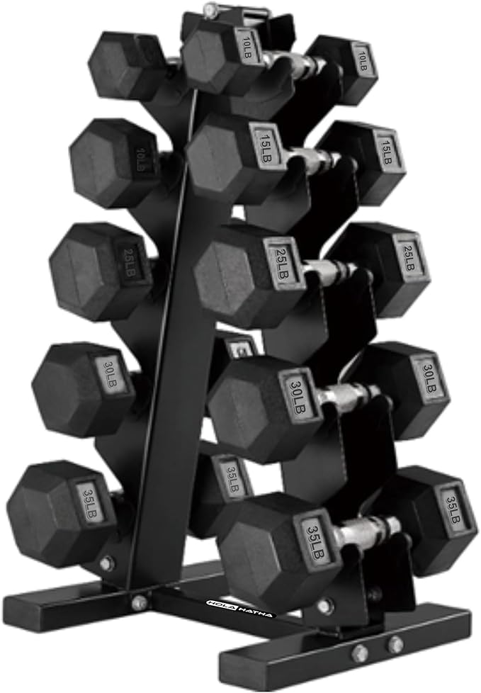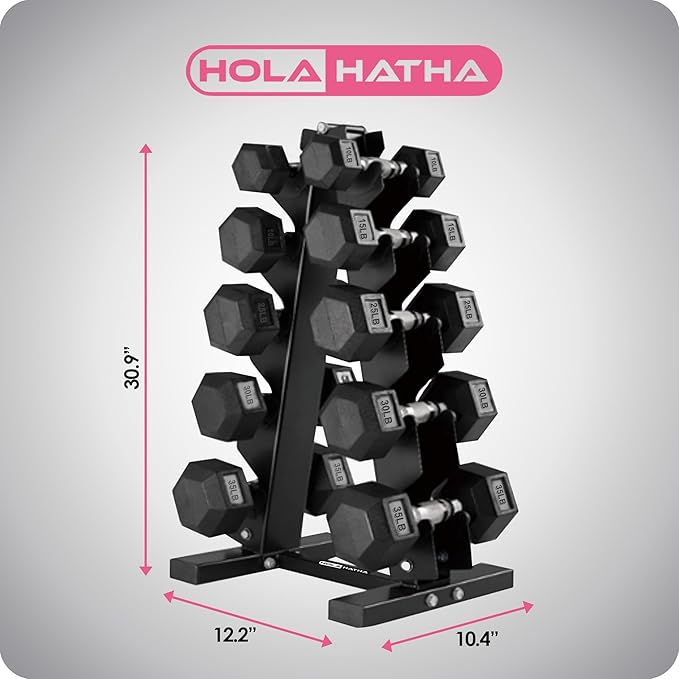 HolaHatha Hexagonal Dumbbell Free Hand Weight Set w/Rack