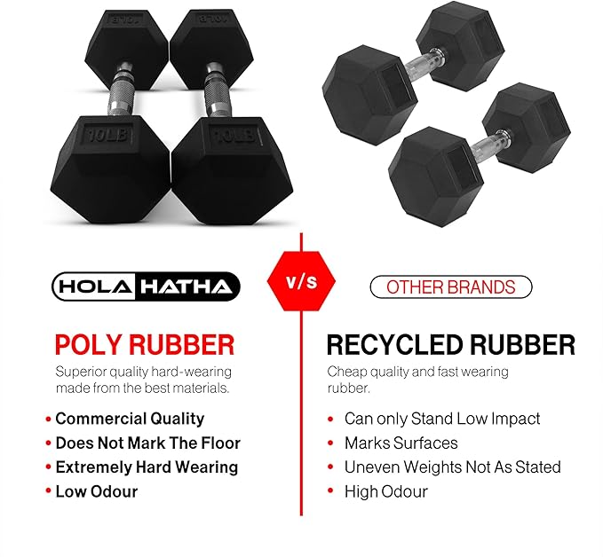 - Durably Made: Crafted from robust poly rubber, these dumbbells are built to withstand the impact of rigorous workouts, ensuring longevity and reliable performance