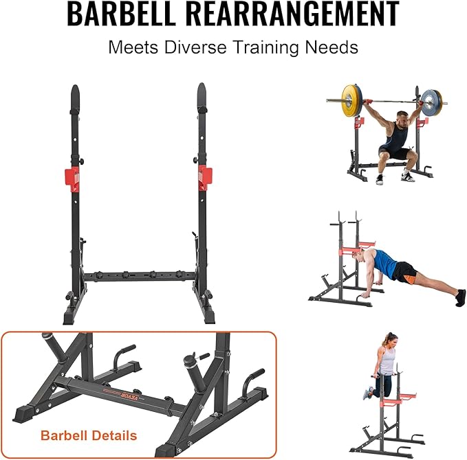 - Versatile Squat Rack: Equipped with various accessories, this multi-purpose rack meets all your full-body muscle training needs.