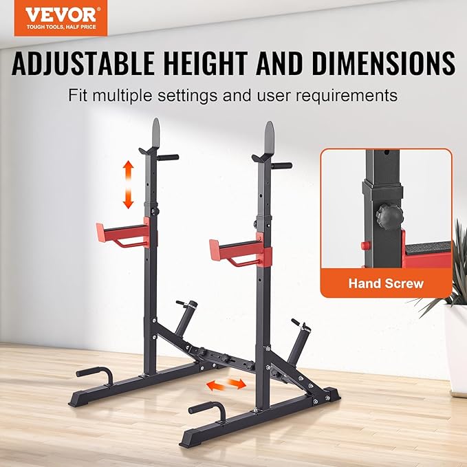 - Adjustable Width and Height: This squat stand power rack features 5 levels of height and 4 levels of width adjustments, enabling precise customization according to your height. Accommodates various body types and training goals for more convenience.