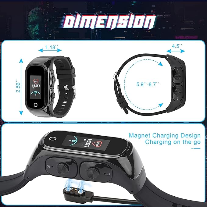 - Intelligent two in one Smart Watch: 2022 New equipped with a 0.96-inch sensitive touch screen and two wireless earbuds inside.Perfect for daily activity tracking, calls and enjoy music while driving or working. Wireless stereo sound quality, which provides Hi-Fi stereo sound quality and powerful bass performance