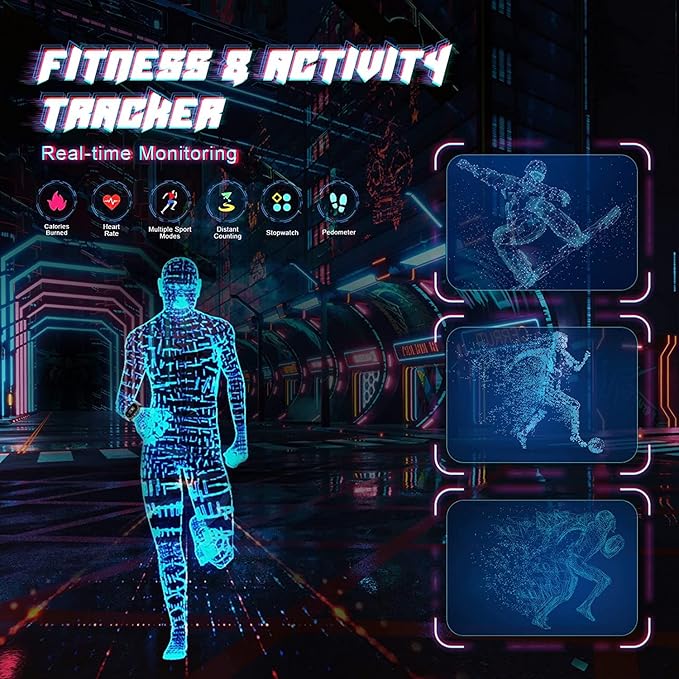 - Innovative and multifunctional: One device more functions.Record your daily activity steps,calorie consumption,sleep monitor,Heart rate monitor,phone calls and messages,take photos,alarm o'clock,anti-lost, etc. The fitness report is synchronized and stored in the App, so that you can achieve your fitness goals quickly and conveniently