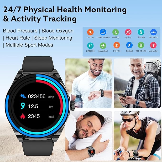 - 【More Funcation】Smart Watch for Android ios Phones.You will never miss any important calls & message during meetings or workout. (including SMS, Facebook, Whatsapp, Twitter, Instagram, Facebook Messenger, LinkedIn, and more).It can also be your Health alarm,Recording Pen,Body thermometer,stopwatch,remote control of music and cameras,weather report,sedentary reminder,and other practical functions to meet your daily needs,More functions waiting for you to explore.