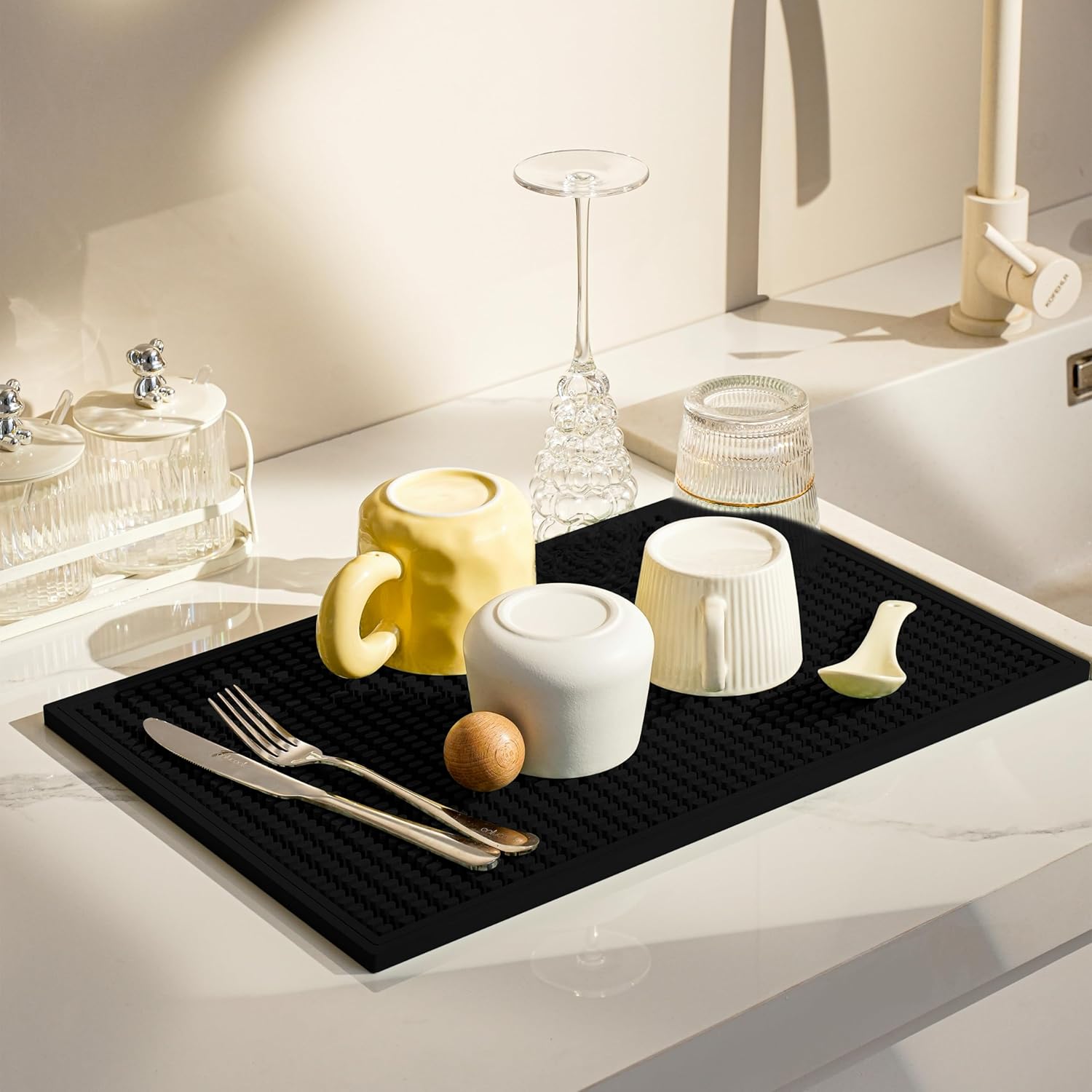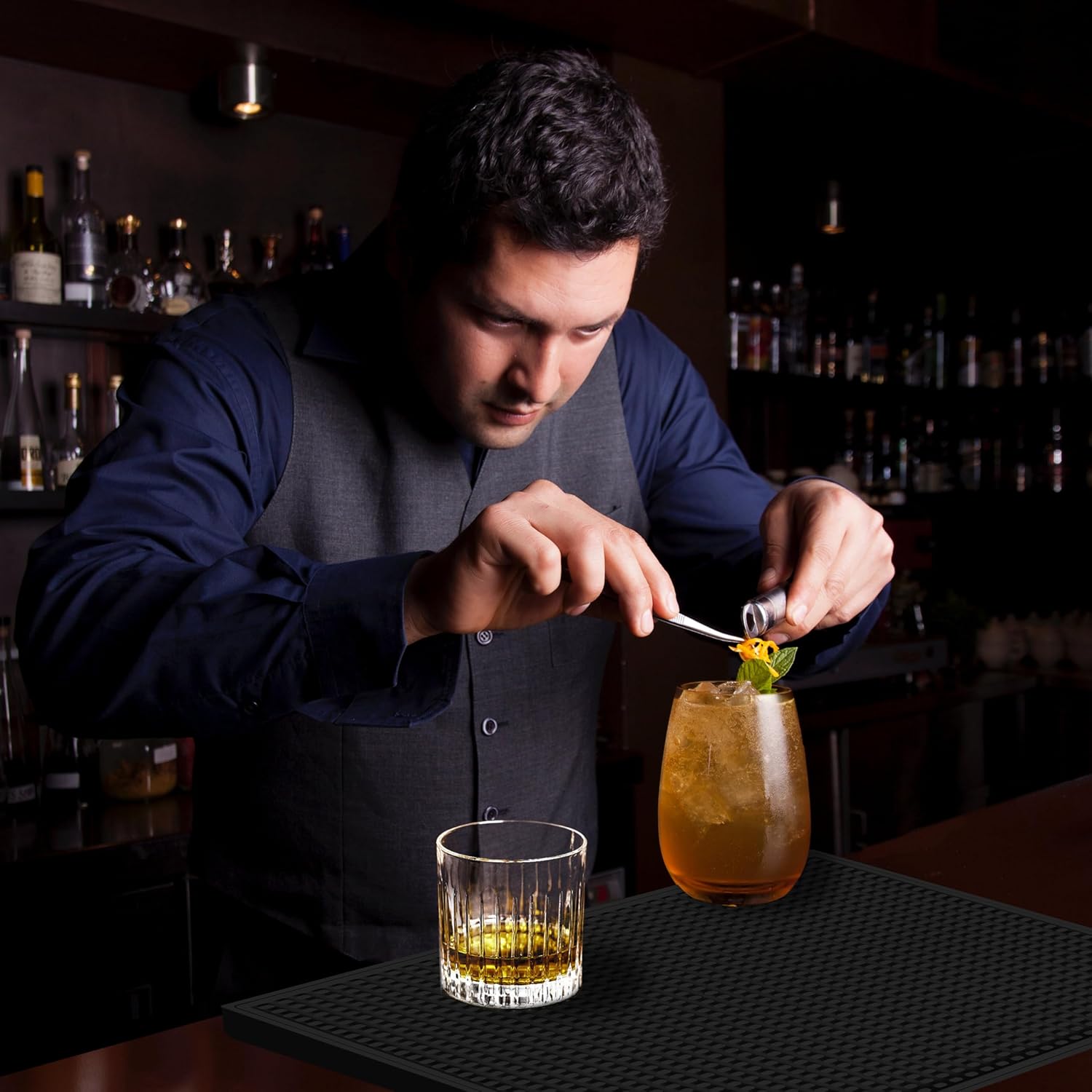 - HIGH QUALITY MATERIAL: Our black bar mat is made from premium quality materials that have been carefully selected to ensure superior durability and long-lasting performance. Whether it's in a busy bar environment or a cozy home coffee corner, this mat is built to last.
