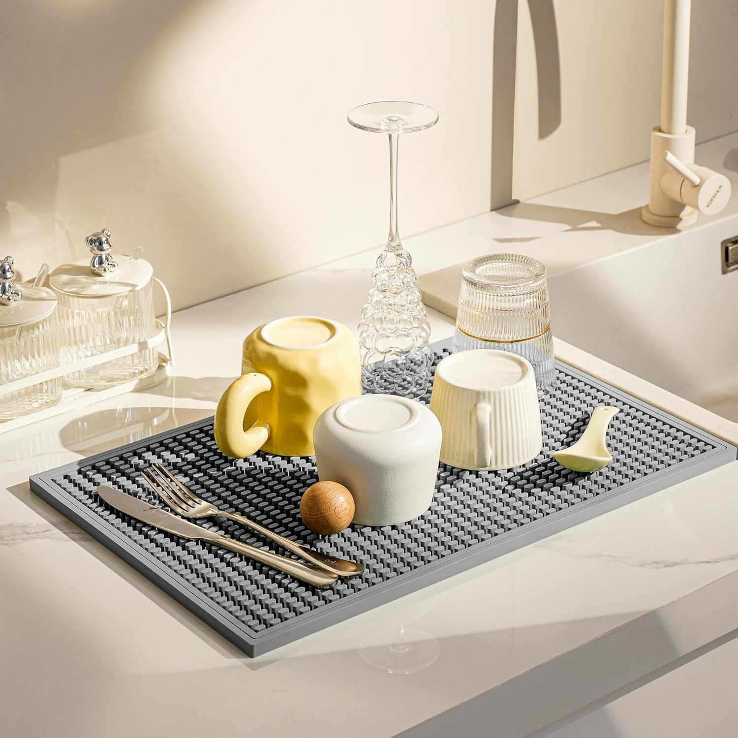 - NON-SLIP DESIGN: Featuring a unique non-slip texture and fine concave design, it effectively stops cups and glasses from sliding on the mat. Whether it's glasses, bottles or other drink containers, it stays firmly in place on the mat, providing you with stability and peace of mind.