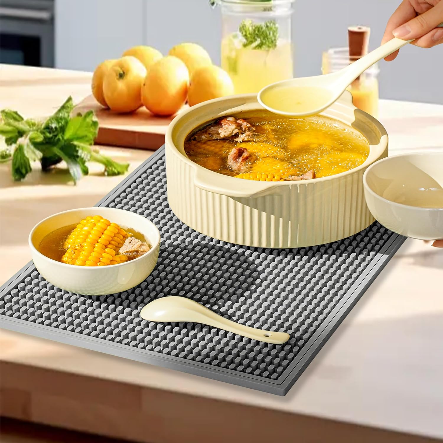 - HIGH QUALITY MATERIAL: Our gray bar mat is made from premium quality materials that have been carefully selected to ensure superior durability and long-lasting performance. Whether it's in a busy bar environment or a cozy home coffee corner, this mat is built to last.