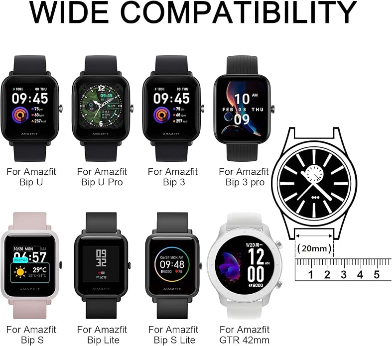 • 【Compatible Models】AK 20mm Quick Release replacement Bands Compatible with Amazfit GTR mini / GTS 4 / GTS 4 Mini / GTS 3 / GTS 2 / GTS 2e / GTS mini, Amazfit GTR 42mm, Amazfit Bip 3 / Bip 3 Pro / Bip U Pro / Bip / Bip Lite / Bip S / Bip S lite / Bip U smartwatch. Also fit for smart watch with 20mm width watch lugs. (Note: Please confirm your watch model before purchase)