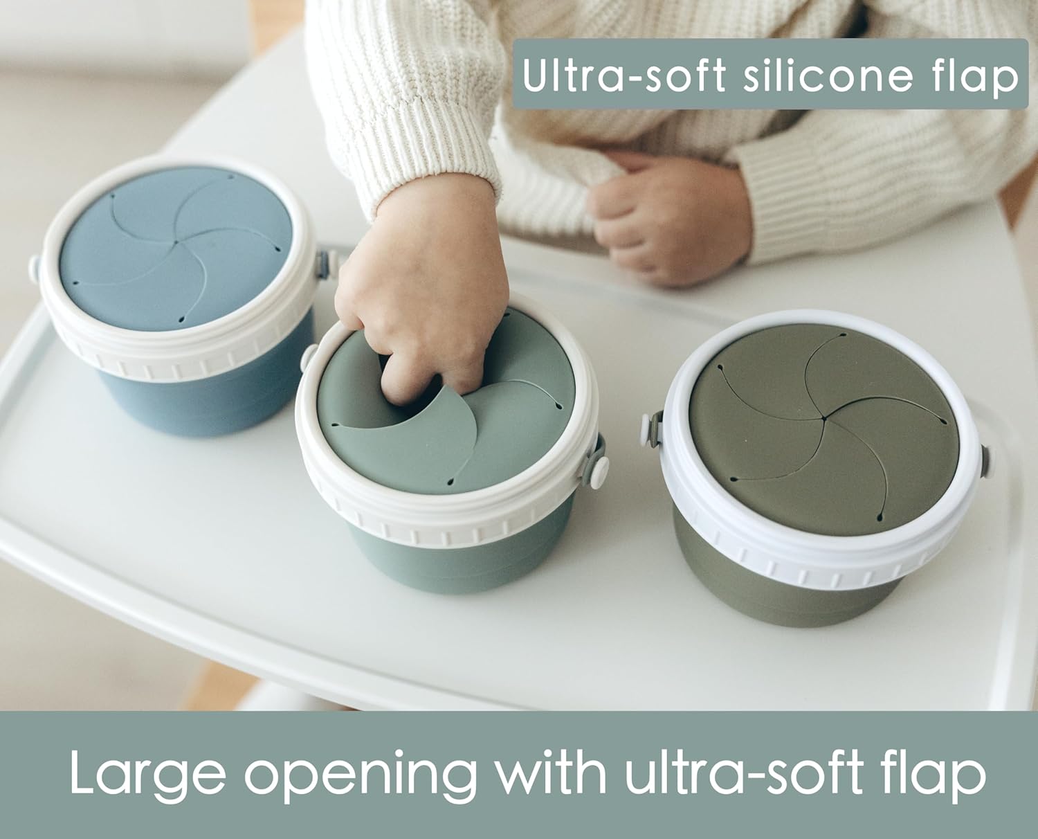 - 3.Ultra-Soft Silicone Flaps: Adopting grinding technique to add smoothness, our silicone flap is super soft for baby's hands in-out, even for tender skin,while keeping food securely inside
