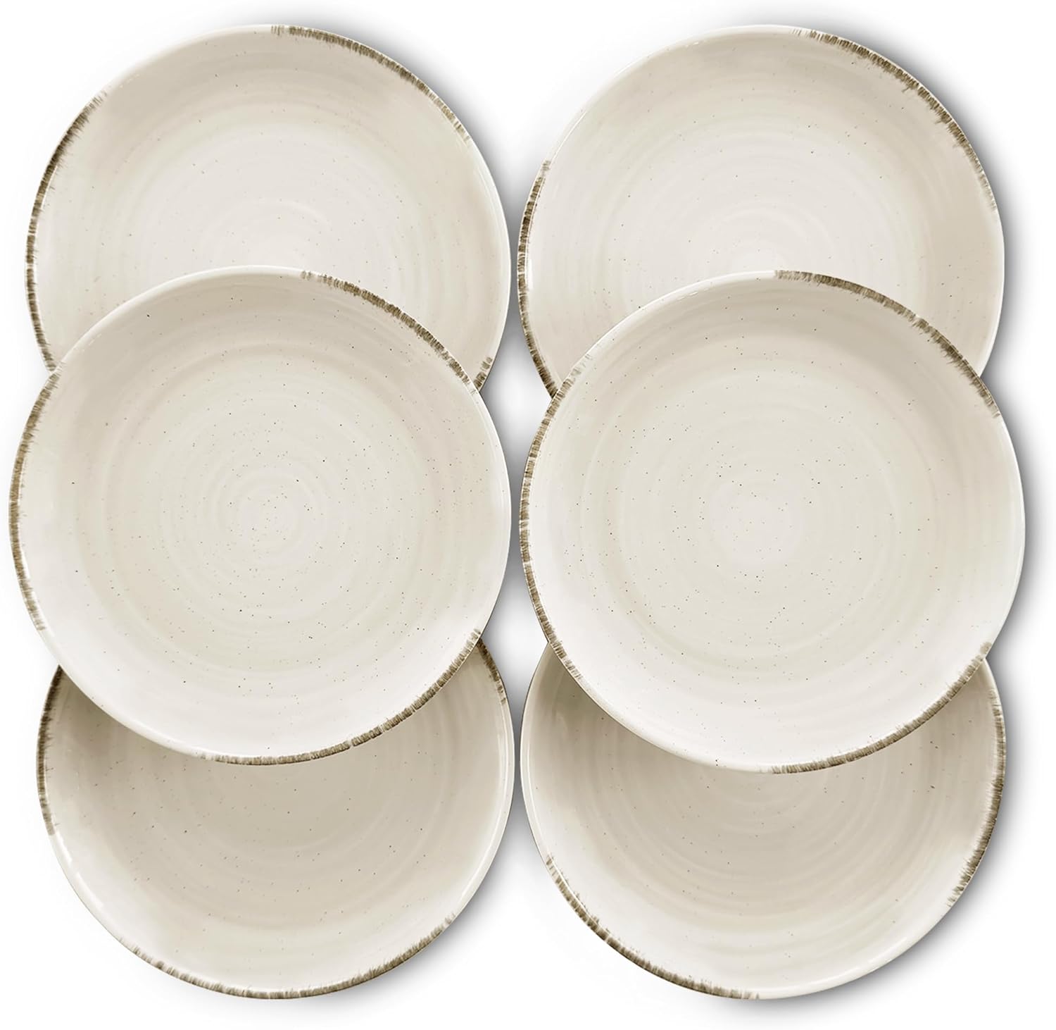 Mora Ceramic Helix Swirl Salad Plates Set of 6, 8in Spiral Porcelain Dish for Kitchen, Small Dinner, Lunch, Appetizer, Dessert, etc - Dishwasher, Microwave, Freezer, Oven Safe Dishware - Snowy White