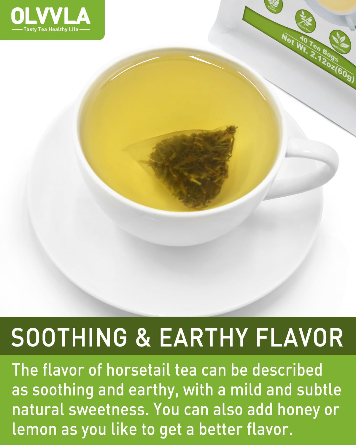 Olvvla - Premium Horsetail Tea Bags - 1.5g X 40 Count - Pure Natural Horsetail Herbal Tea - Caffeine-free - Non-GMO - Dried Horsetail Herb - Rich in Antioxidants & Support Bone Health