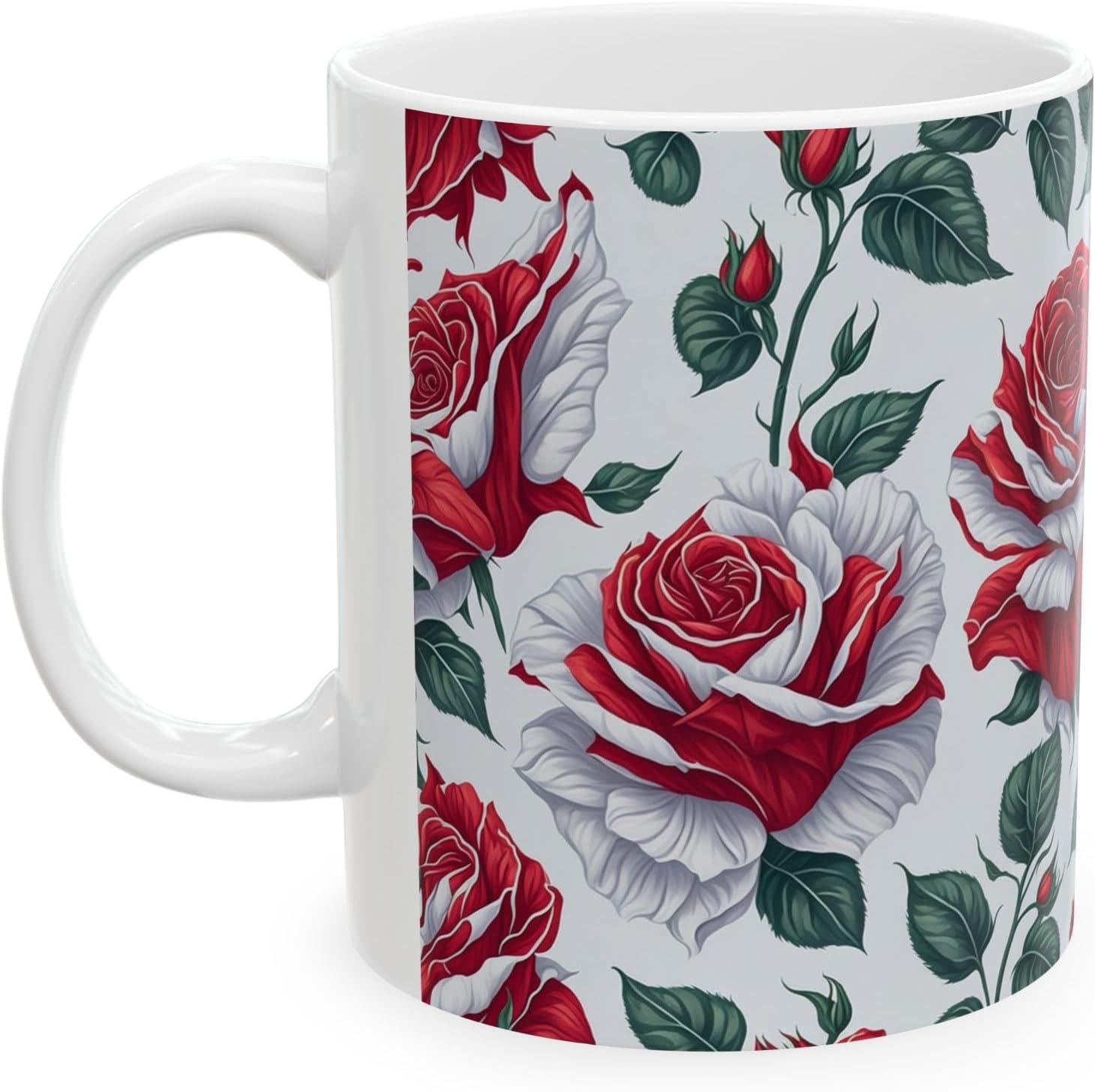 11 OZ Novelty Coffee Mugs - Christmas Gift (Red Rose Theme)