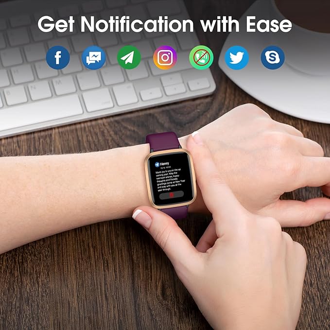 - Get Notified on Smartwatches: The smart watch receives notifications from SMS, Facebook, Instagram, Whatsapp etc, This helps you stay up-to-date and avoid missing important information. (The watch cannot make calls or text back). The watch also has a sedentary reminder function and you can create reminders for drinking water, meetings, dinners, appointments and more in the alarm settings, enjoying a healthier lifestyle and a well-planned schedule.