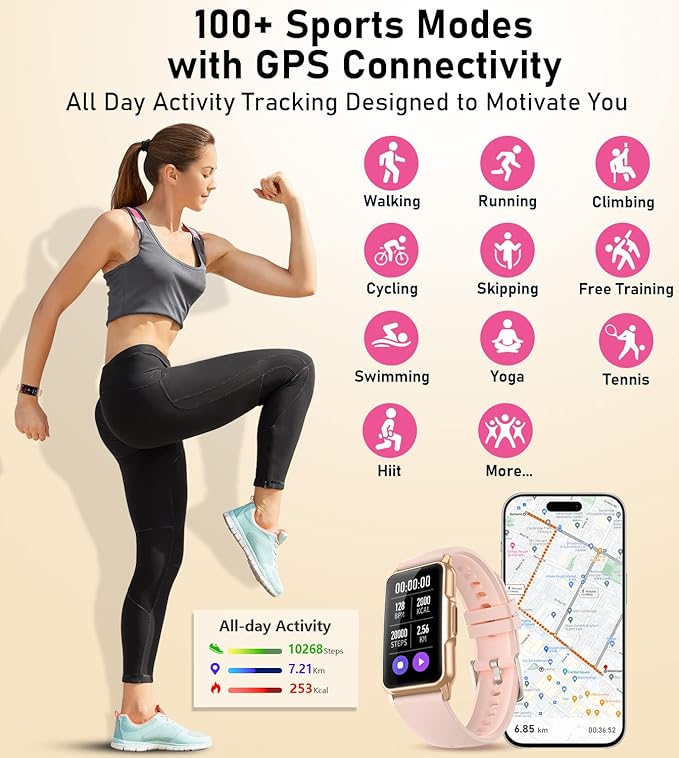 - 【115 sports modes & All-Day Activity Tracking】There are more than 115 sports modes tracking available in the activity trackers and smartwatches, covering almost all daily sports activities you can imagine, gives you new ways to train and advanced metrics for more information about your workout performance.The all-day activity tracking feature monitors your steps, distance, and calories burned all the day, so you can see how much progress you've made towards your fitness goals.