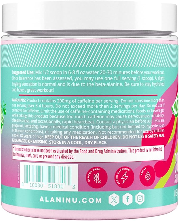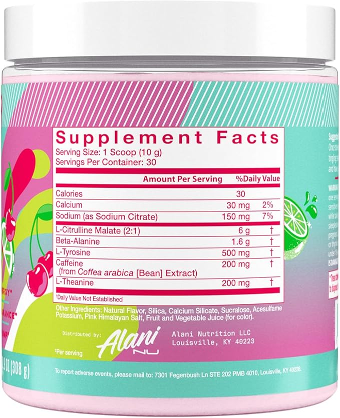 Alani Nu Pre Workout Powder Cherry Twist | Amino Energy Boost | Endurance Supplement | Sugar Free | 200mg Caffeine | L-Theanine, Beta-Alanine, Citrulline | 30 Servings