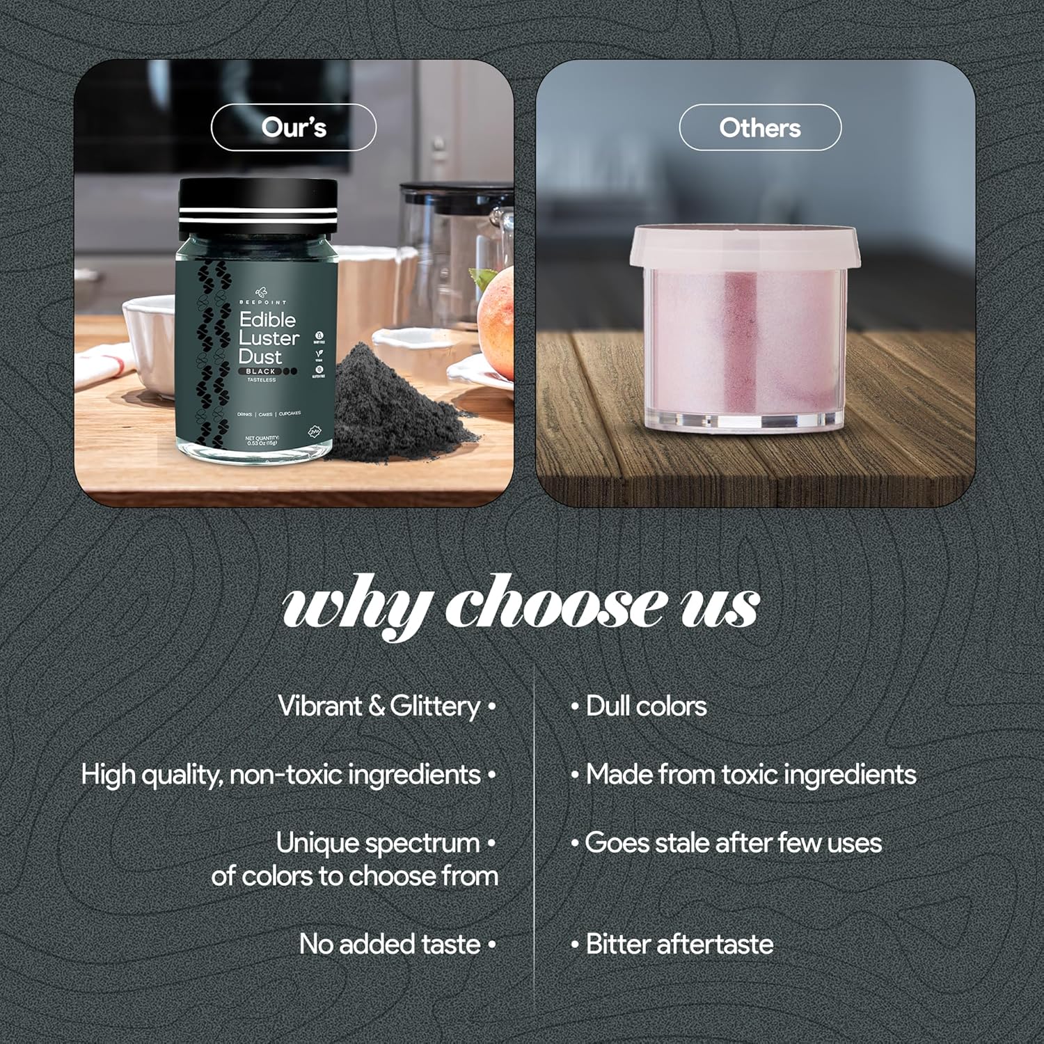 BeePoint Black Edible Luster Dust 15g - Food Grade, Vibrant Color Shimmer Powdered Dust for Drinks, Cocktails, Cake Decorating, Baking, Chocolates, Candy, Sweets, & Cookies - Vegan & Gluten Free