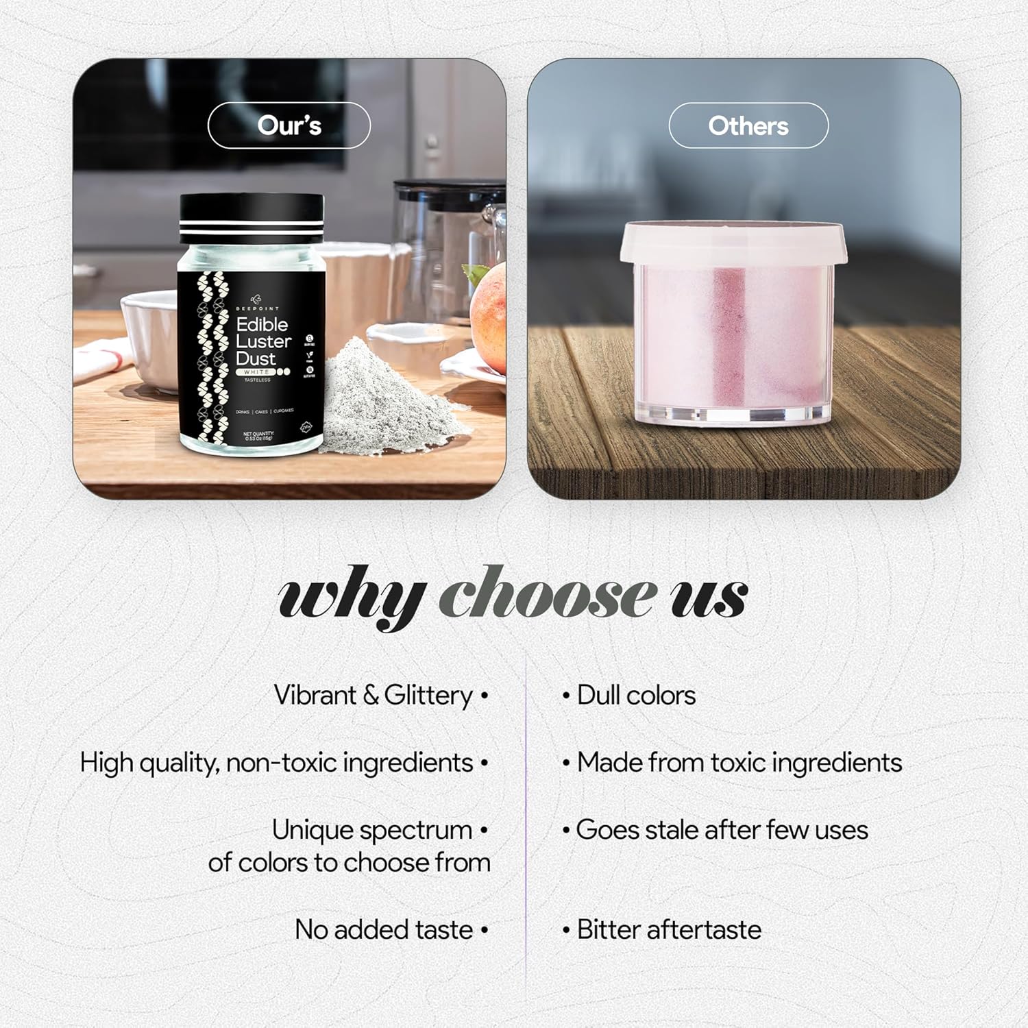- Effortless Sparkle: Achieve vibrant metallic food glitter edible dust on cakes, desserts, and drinks with our easy-to-use luster powder dust, perfect for both beginners and professionals