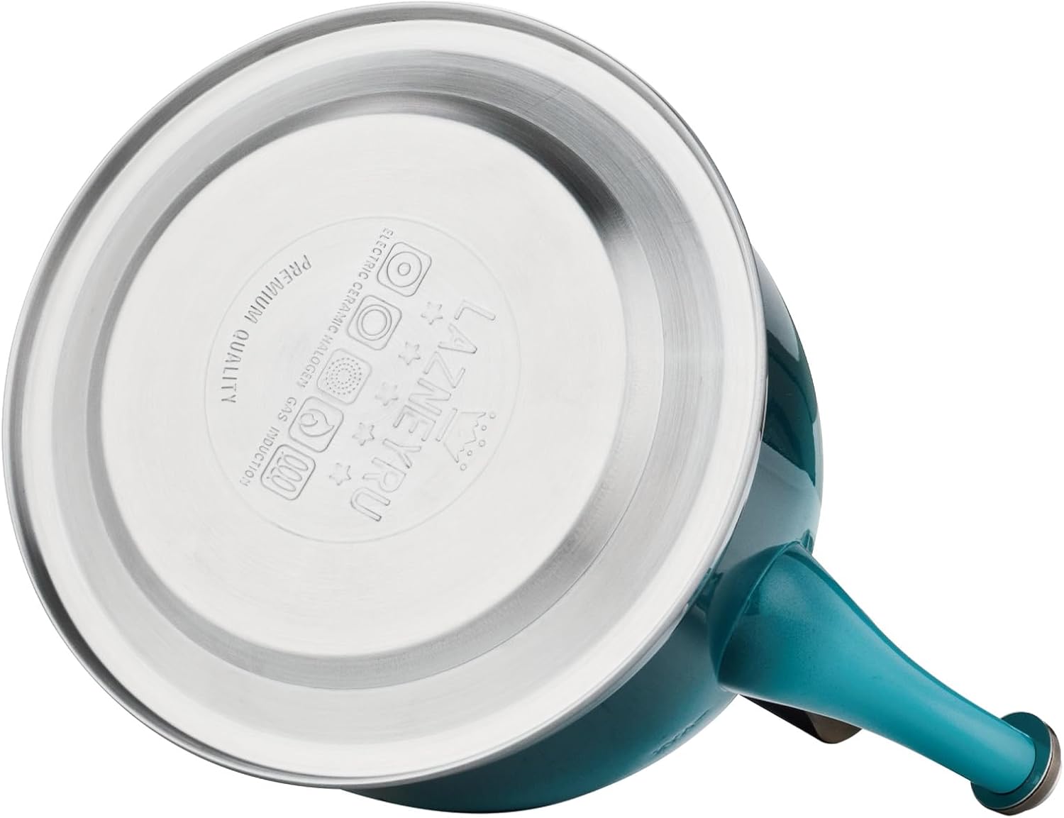 - 【Stainless Steel Design】Whole teakettle body are made of stainless steel, The thick body making it more durable and sturdy. 5-layer metal bottom with high thermal conductivity for more uniform heating and longer service life.