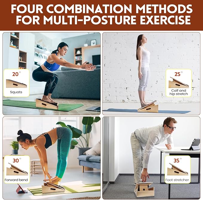 - 【ADJUSTABLE STRETCH ANGLE】: Our combination calf stretch inclined board also has an adjustable design, allowing you to adjust the stretch angle between 4 positions: 20°/25°/30°/35°. You can set the appropriate angle according to your needs. It is suitable for beginners, experienced athletes of all ages and all body types.