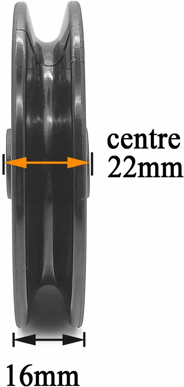 - UNIVERSAL FIT: The pulley wheel is 90mm diameter. Center hole diameter 10mm. Depth of groove 10.8mm ;Width of groove10.2mm. The wheels seat up to 7mm rope or cable.