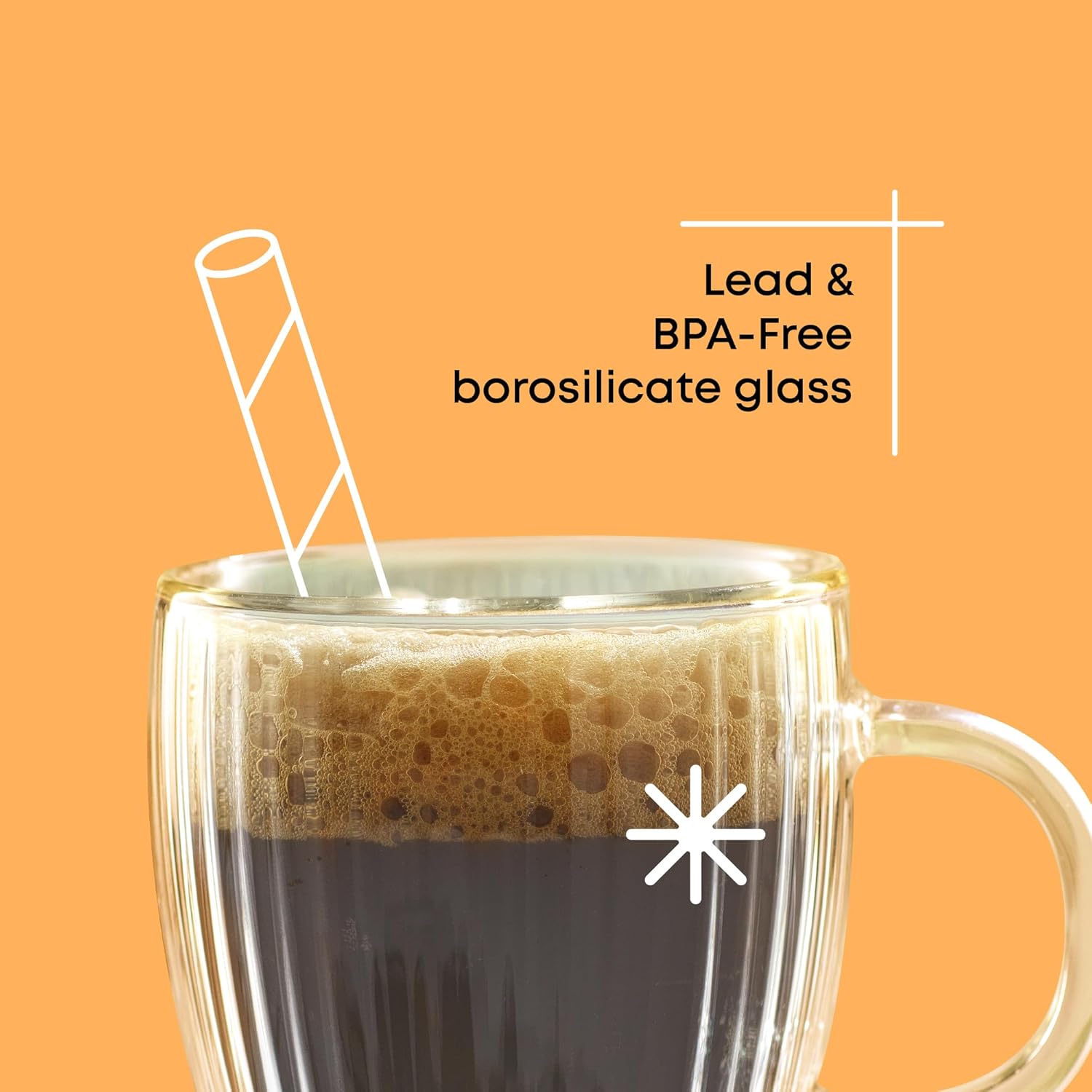 - THE SAVOR CUP, BUT BETTER: Coffee drinkers adore our JoyJolt Savor Double Wall Insulated Glasses Espresso Mugs, so we upgraded this popular insulated cup and added it in fluted glassware! This 5.4oz double wall lungo cups 2pc set has a 4.5mm rim and narrow insulated wall making it comfy to drink from.