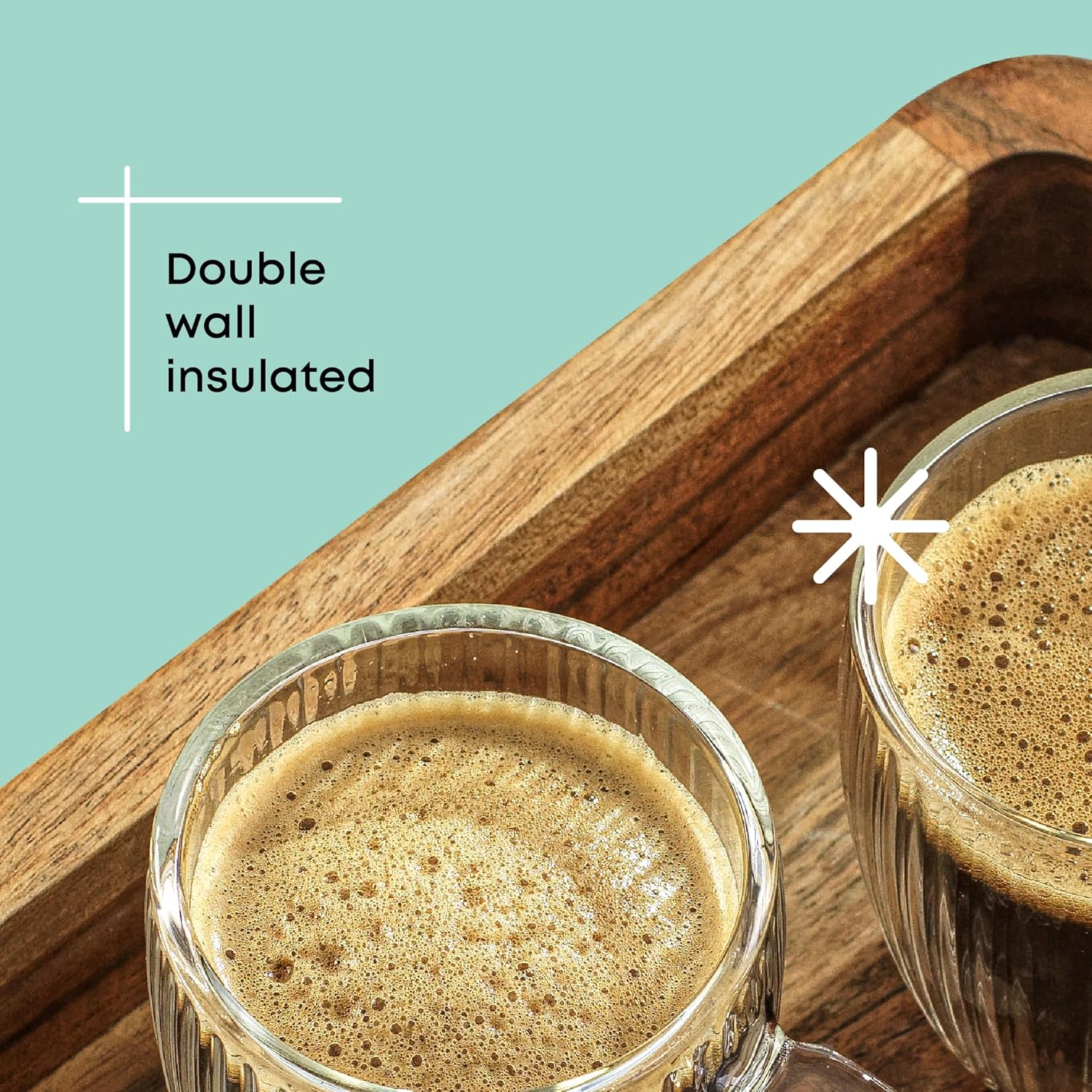 - SECURELY PACKED ESPRESSO ACCESSORIES: Just like all joyjolt coffee mugs, this set of two 5.4oz double walled espresso cups will come securely bubble wrapped and gift boxed with our 12 month warranty. Espresso glasses that don’t sweat in a rippled aesthetic cups vibe. Yay! Drink with Joy and JoyJolt.