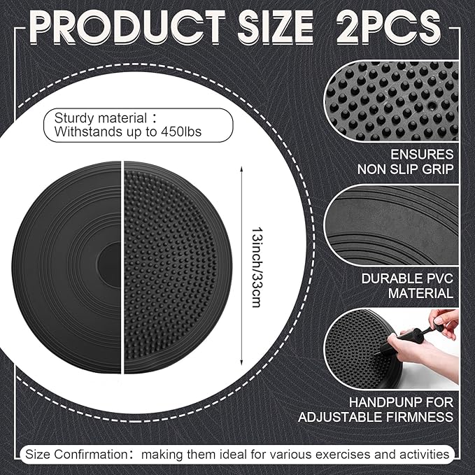 - Sufficient Quantity: the wobble cushions set includes 2 cushions and a pump, providing you with a spare cushion for backup or to share with a friend, ensuring you have enough equipment for your fitness or exercise needs, they will be nice gifts