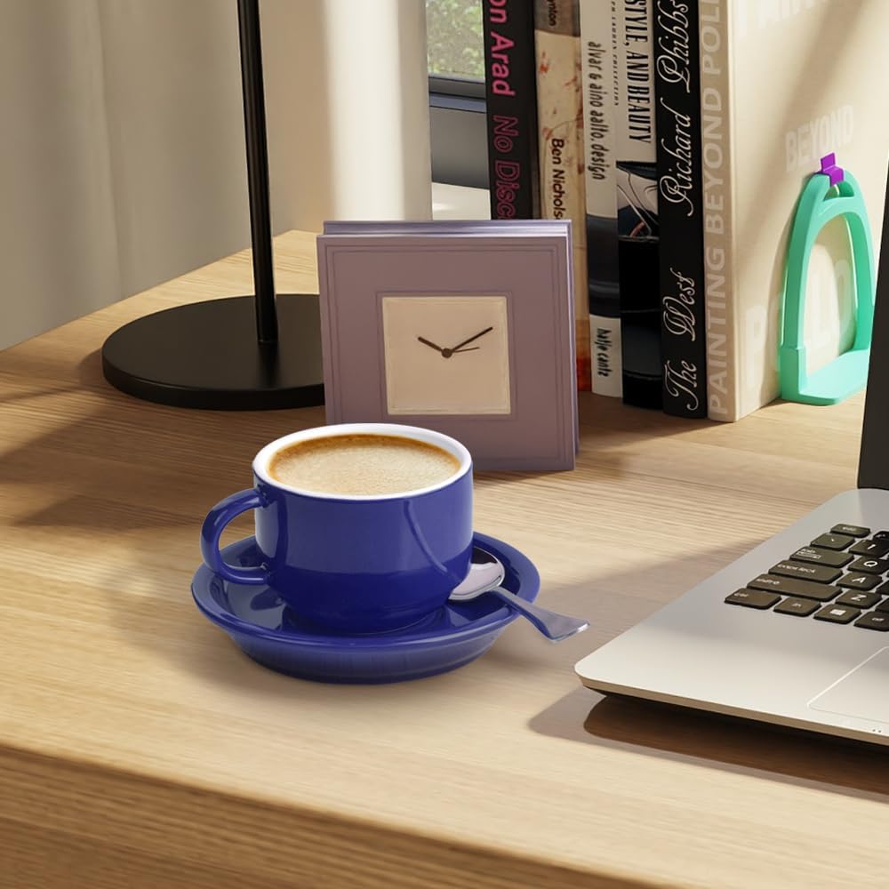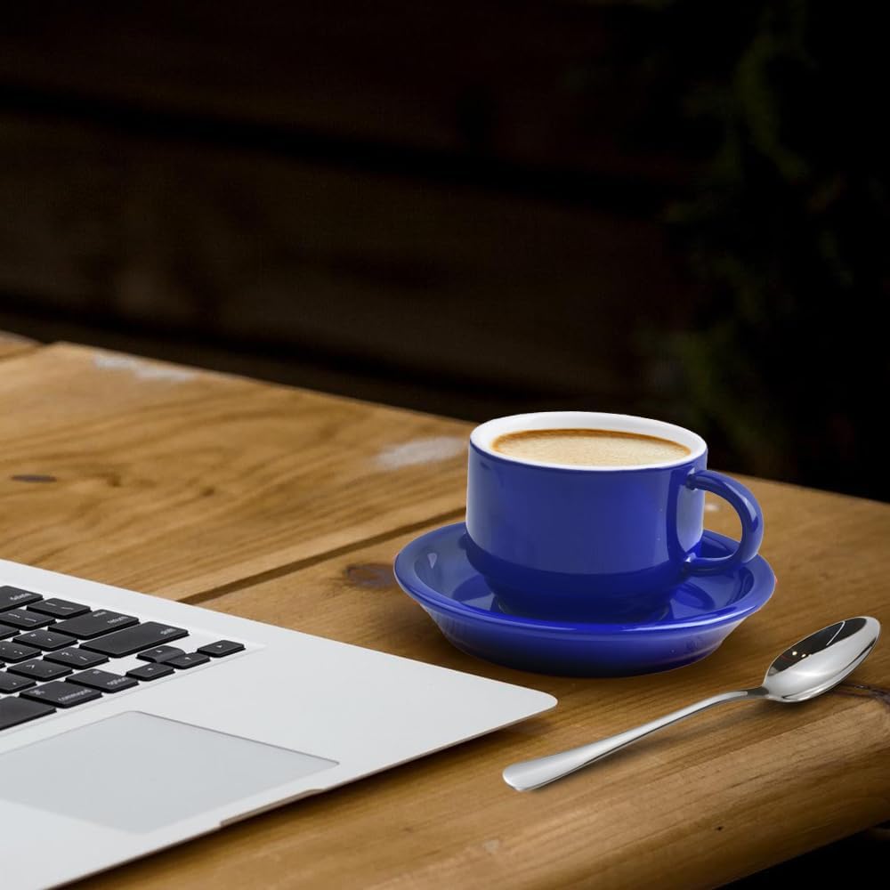 - Complete Set: Each package includes 4 navy high-quality 2.5 oz espresso cups, matching saucers, and stylish espresso spoons. The set is well packed with protective gift box.