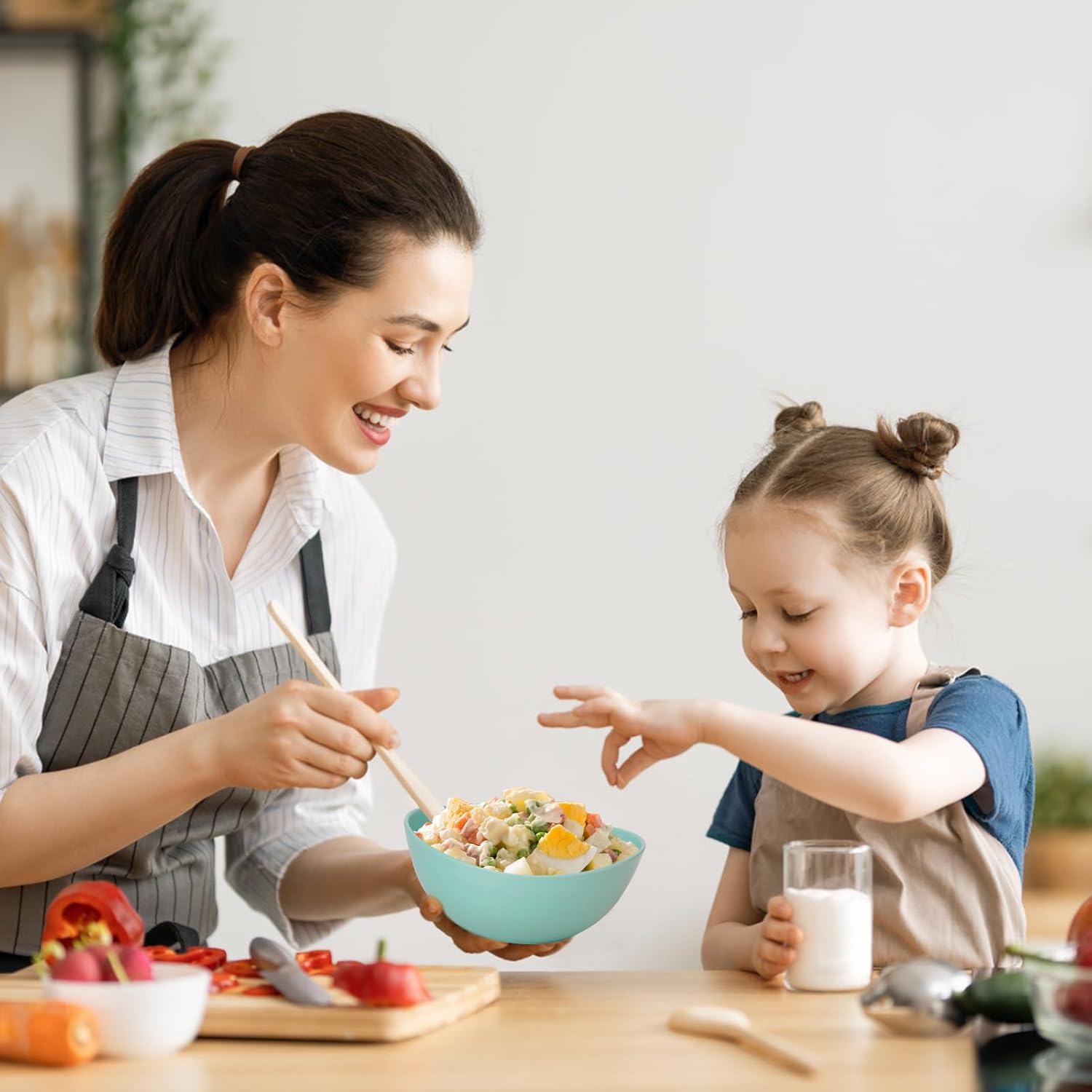- Versatility Bowls Set for Kitchen: 6.2 inch is the perfect size for regulation of serving sizes, Perfect size for regulation of serving sizes.You may use them for soup, pasta, salads, you may even use them as serving pieces for dips at your cookout. The capacity 24 ounce is perfect for individual servings or sharing dishes at the dinner table.