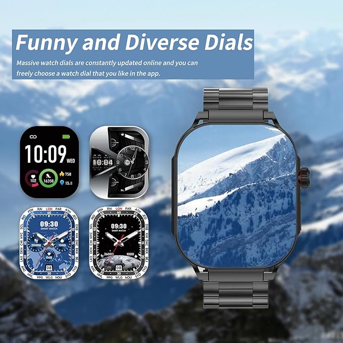 - Customized Watch Face: The smart watch has a 2.06” AMOLED Full Touch large screen with 320*390 high resolution and a narrow borders design. While narrower borders expand visual boundaries, sensations are natural and pure. You can customize watch faces by downloading 100+ massive online dials from “Dafit” APP. You can choose your favorite photos and easily set up to create your own dedicated watch faces.