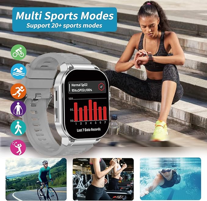 - Multi-sports modes: when you are doing exercises, the smart watch can record steps, mileage and calorie consumption data at any time, so you can better understand your exercise status. It Supports 20+ sports modes, Walking, running, cycling, jumping rope, badminton, basketball, football, YOGA, table tennis, etc. To help set up the sport mode, there is a shortcut button on the right side. You can check detailed record data on the watch or APP to help you achieve your fitness goals, a great fitness partner for you!