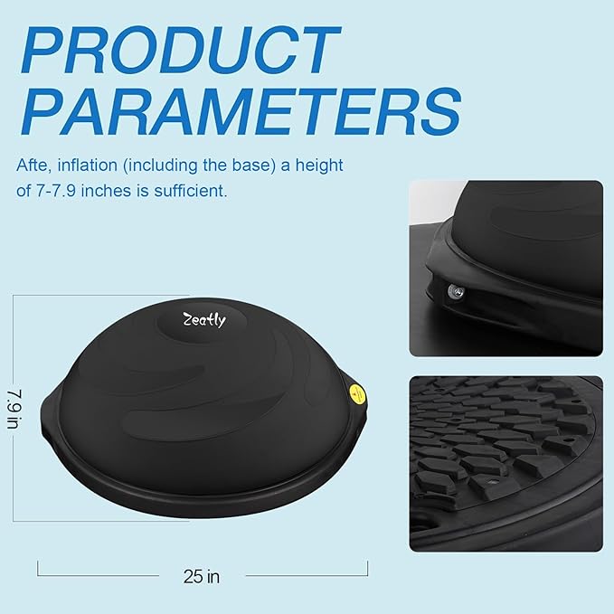 - ππππ ππ πππ ππππ ππππππ πππππ: Our balance trainer enhances your core strength and posture with its versatile design, meticulously crafted to target core muscles and refine posture during exercises, yoga sessions, and aerobic training. This half yoga ball balance trainer features a 25-inch wide flat base for enhanced stability, ensuring safety and confidence throughout your workout routine.Balance Board