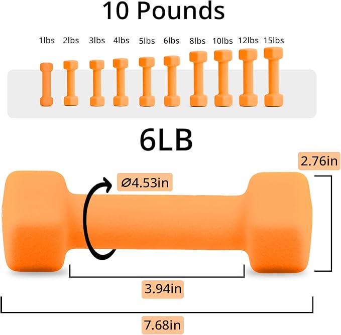 Portzon Weights Dumbbells 10 Colors Options Compatible with Set of 2 Neoprene Dumbbells Set,1-15 LB, Anti-Slip, Anti-roll, Hex Shape for Shoulder,Neck, and Hand Training for Seniors