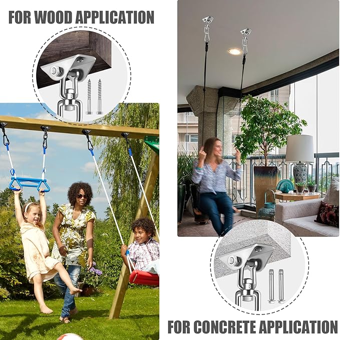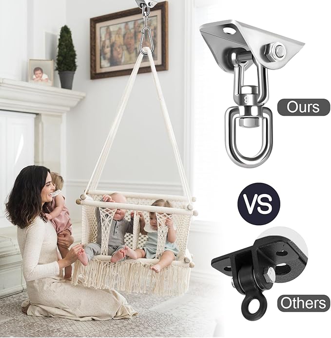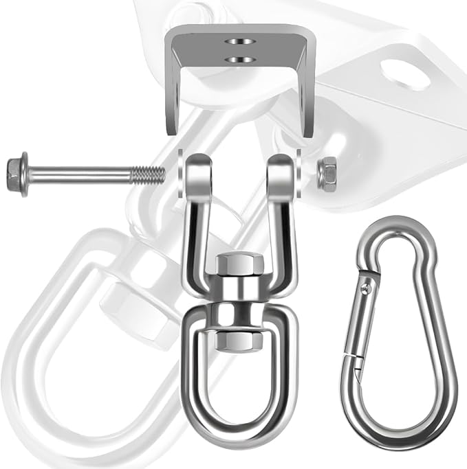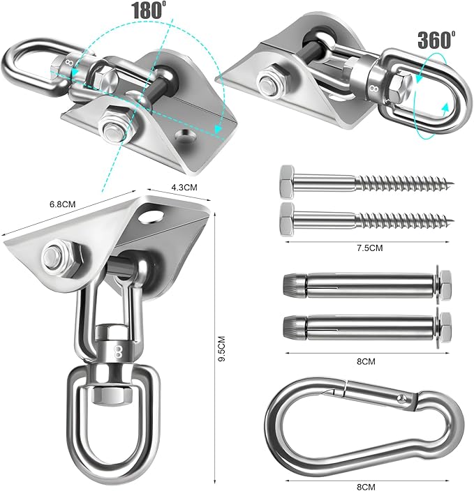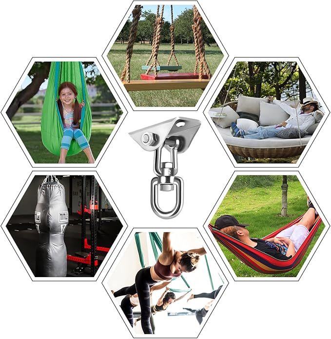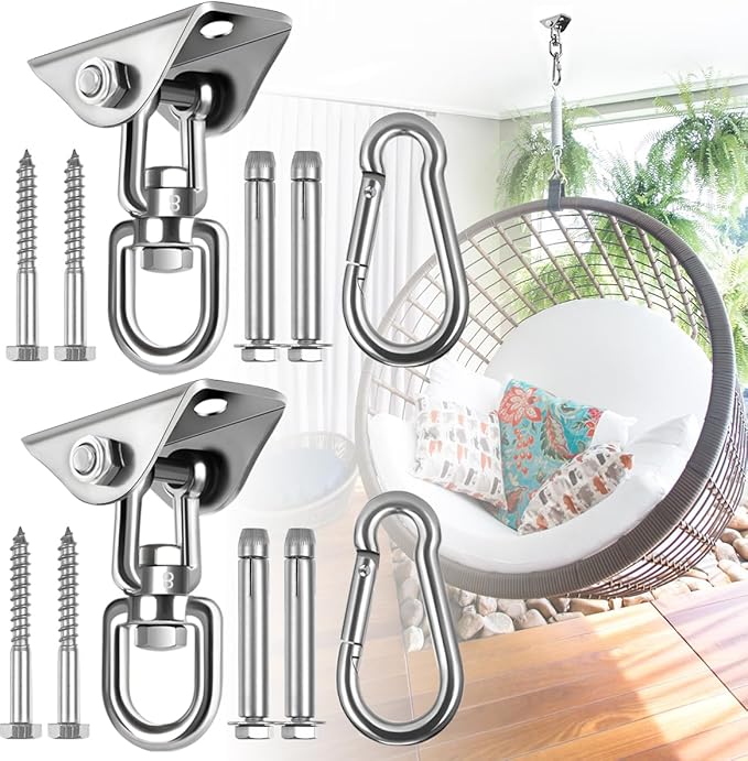 - 🔗360-Degree Rotation : The hammock hanging kit rotating hook can be rotated all-around without any tangles or distortion, so you can swing your hammock freely to relax or have fun. It prevents tangles or twists. Innovative design ensures wider and more flexible use.Porch swing hanging kit,hammock chair hanging kit,hammock hook,swing hooks,hanging chair hardware,ceiling swing hooks,hammock kit,hammock with stand,hammock stand,hanging chair,hammock chair with stand,hammock swing.