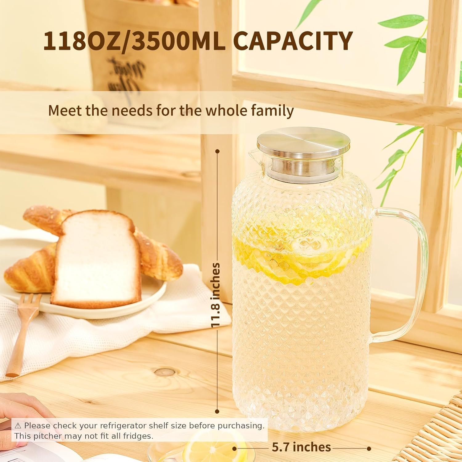 Glass Pitcher, 3.5L/118 oz Glass Water Pitcher with Lid and Spout, Heat/Cold Resistant Borosilicate Glass Water Carafe for Coffee, Juice and Homemade Beverage