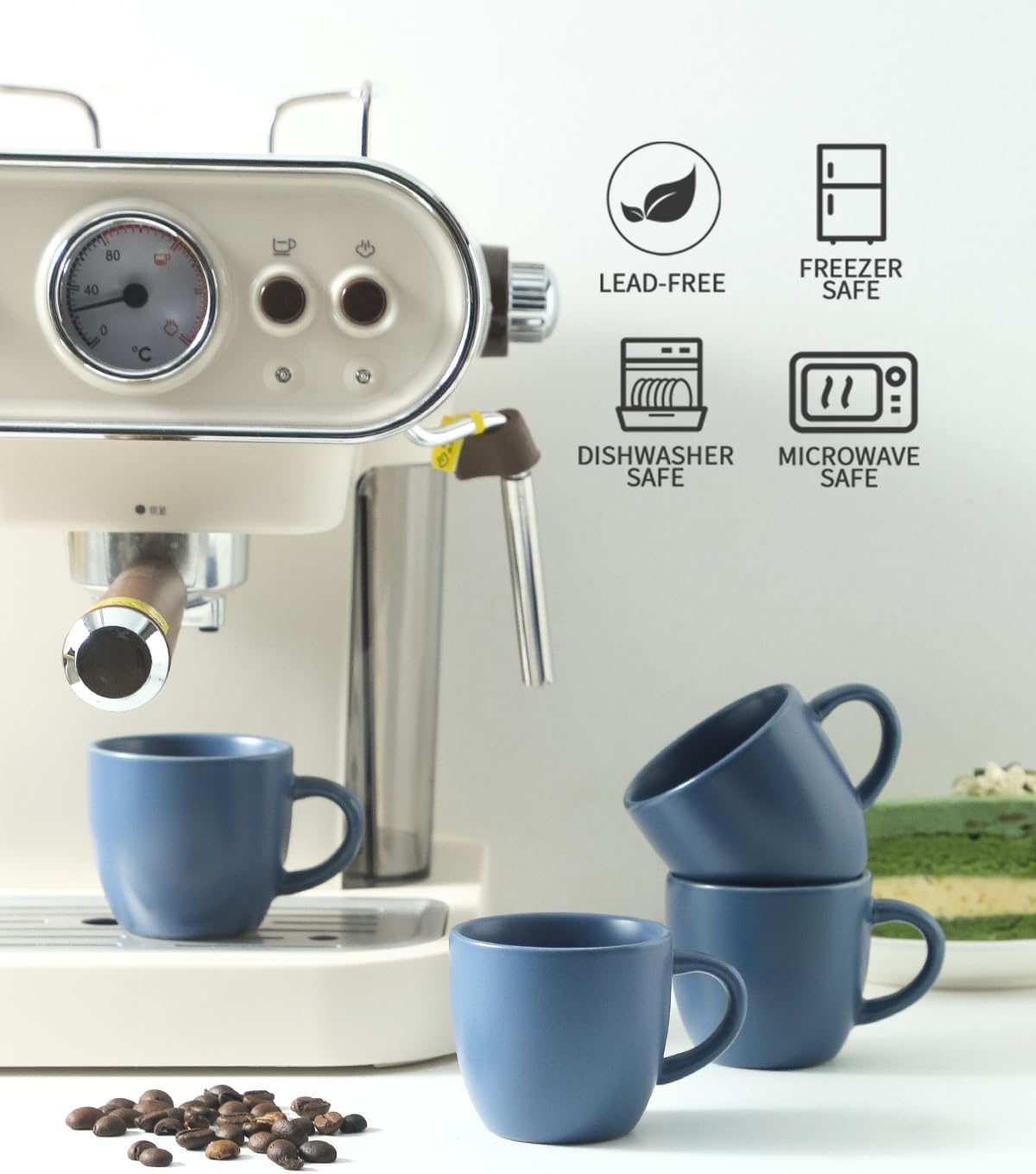 Hasense Ceramic 3 OZ Espresso Cups, Porcelain Espresso Demitasse Cups Set of 4 for Double shot, Lungo and Ristretto, Tiny Italian Expresso Shot Coffee Mugs for Home and Office, Blue