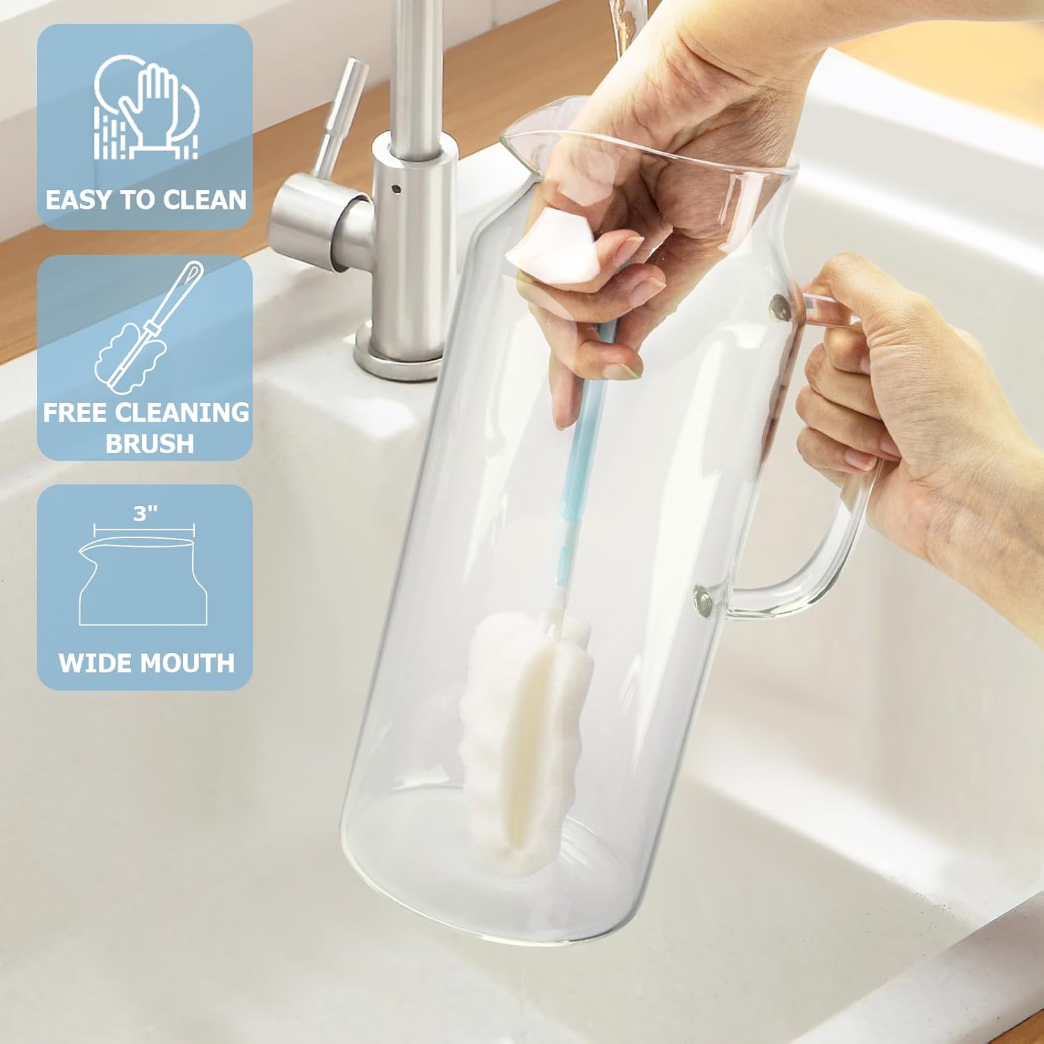 Yirilan Glass Pitcher, 2.3 Liter Water Pitcher with Lid, Beverage Pitchers for Hot, Cold Water, Iced Tea and Juice Drink with Cup Brush