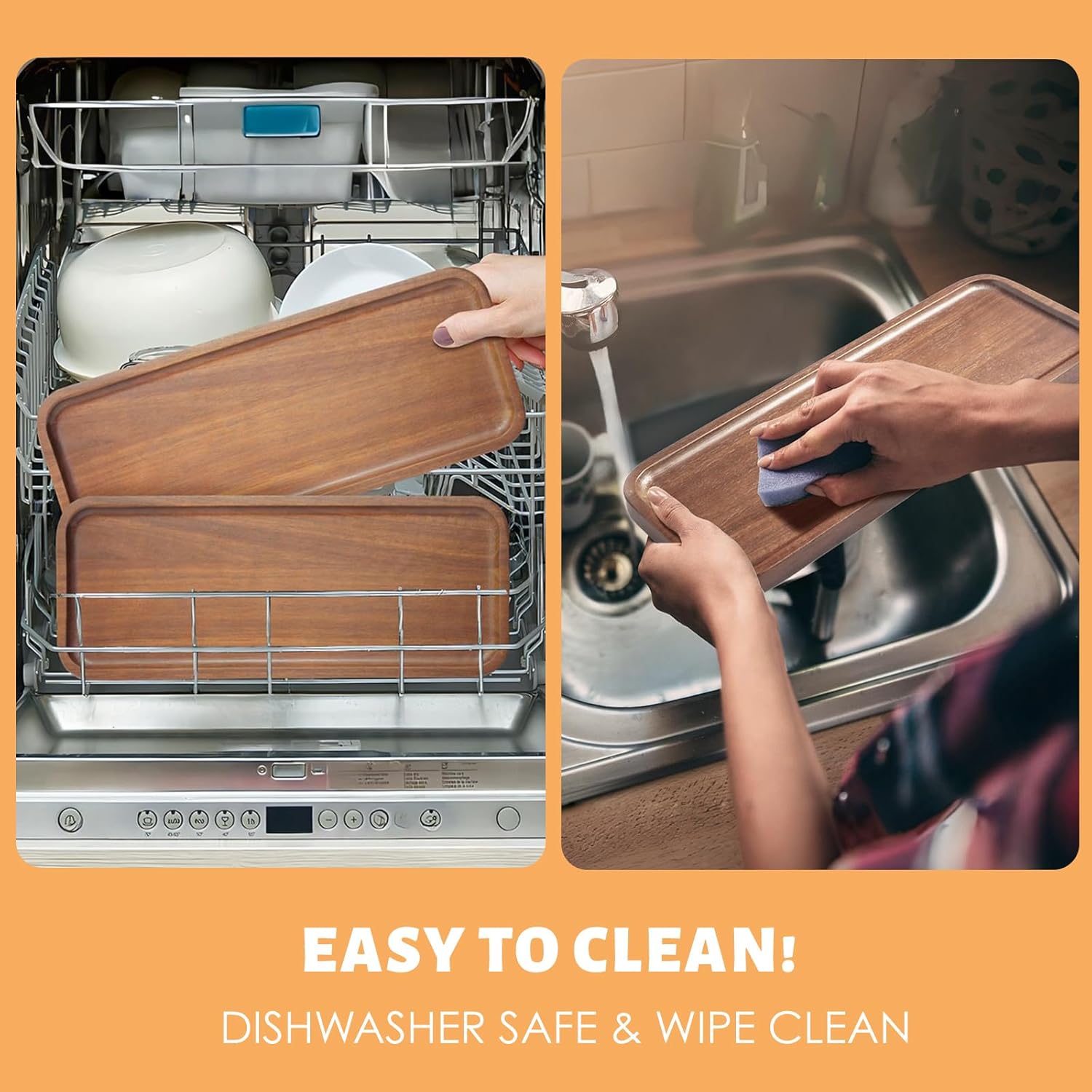 - ❤【High-quality Acacia Tray】: You will get a tray made of 100% acacia wood. L x W: 10 inches x 5.5 inches. Our wooden trays for food are durable, lightweight, easy to use and store.