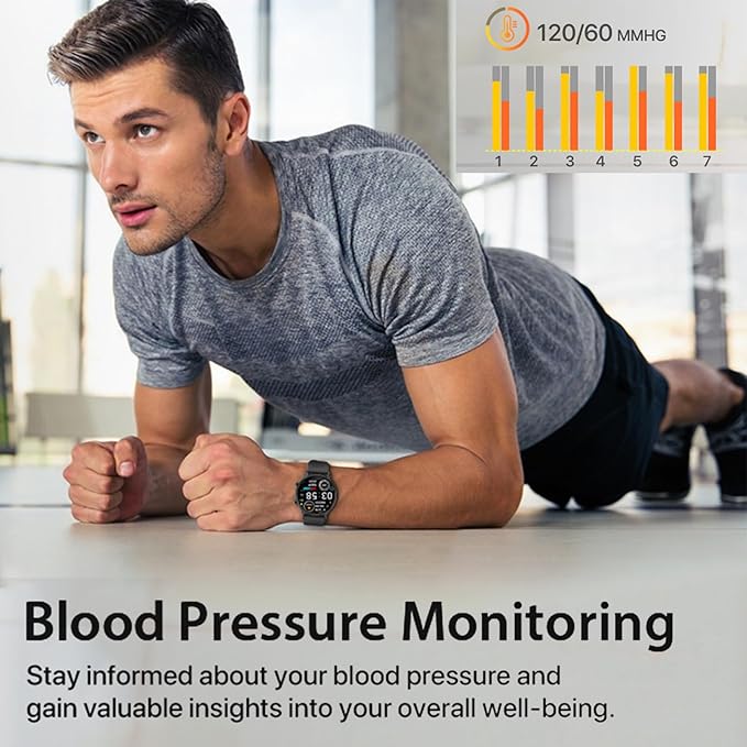 - 【Intelligent Fitness Companion】Take your training to the next level with this feature-packed fitness tracker smart watches for men. Fitness tracker supports 100 professional fitness modes, including yoga and HIT. With accurate tracking and analysis of data points like blood pressure, steps, and calories burned, this smart watches for men is compatible with both IOS and Android devices.