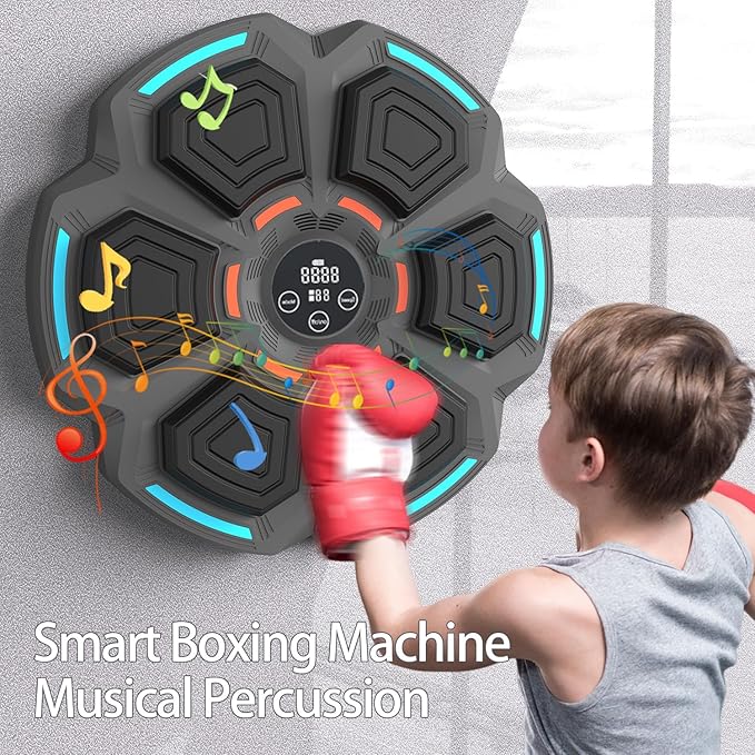 Smart Music Boxing Machine for Adults and Kids, Training Machine with LED Electronic Wall Mounted, Home Indoor Workout Equipment with Premium Boxing Gloves