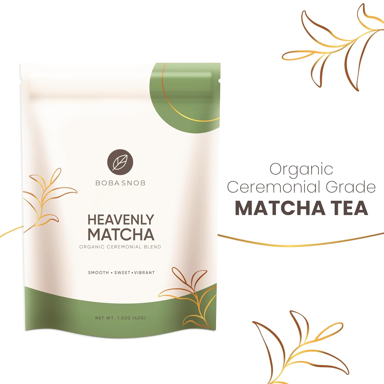 Boba Snob Boba Tea Maker Kit with Organic Ceremonial Tea, Tumbler, Two Stainless Steel Straws, Bamboo Whisk, Teaspoon, and Tapioca Pearls (Small Matcha)