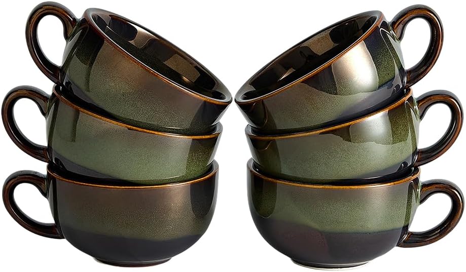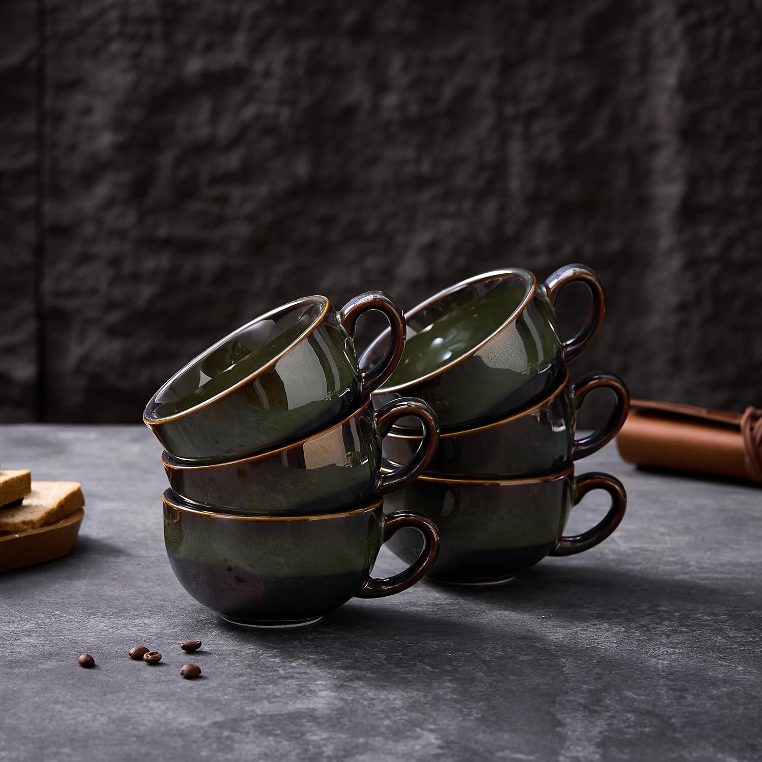 Set of 6 Vintage Design 12 oz Professional Barista Ceramic Latte Art Cappuccino Cups Set (Sea Grey * 6)