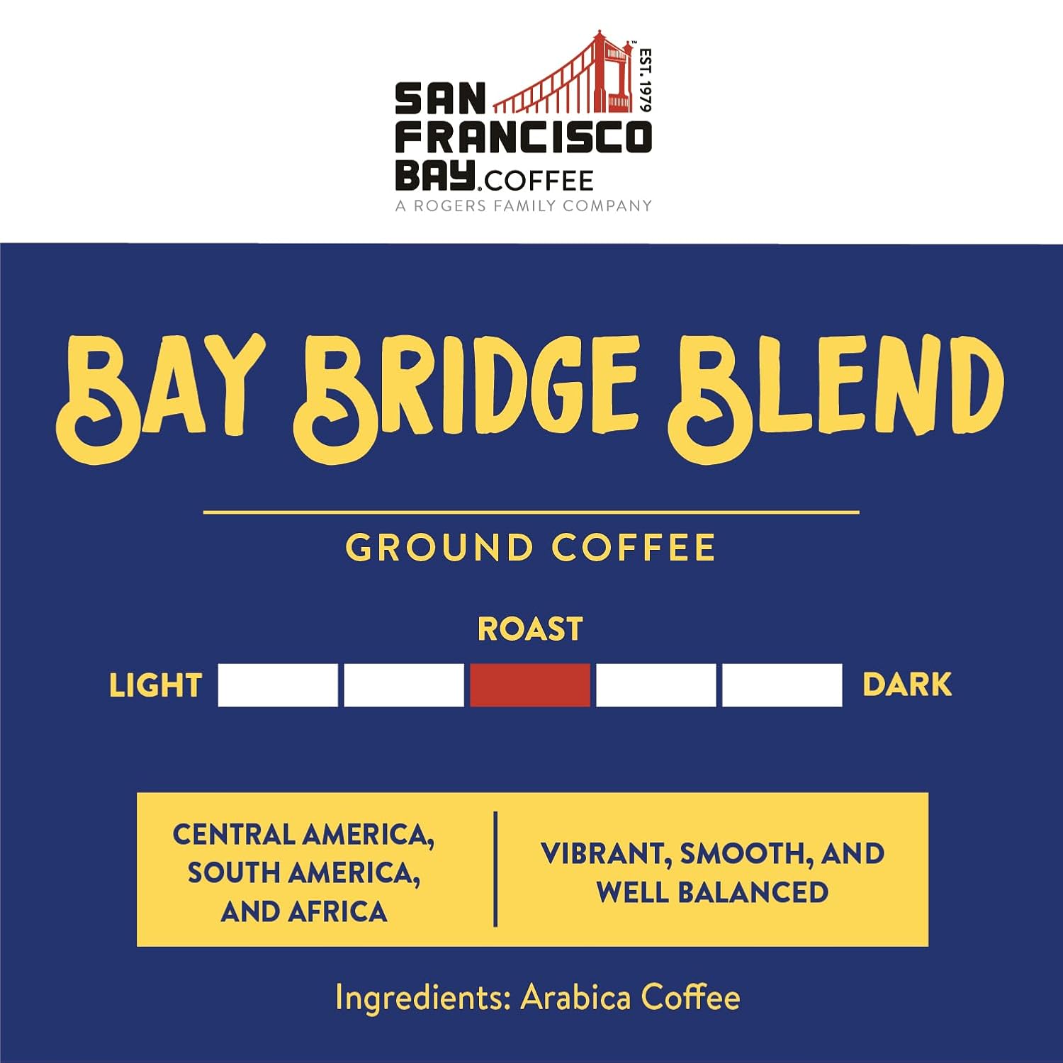 - Bridge the gap to exceptional taste with this smooth, well-rounded medium roast. Bay Bridge Blend is the perfect balance of flavor and intensity sourced from Central America, South America and Africa. Elevate your mornings and invigorate your afternoons with the irresistible medium roast.