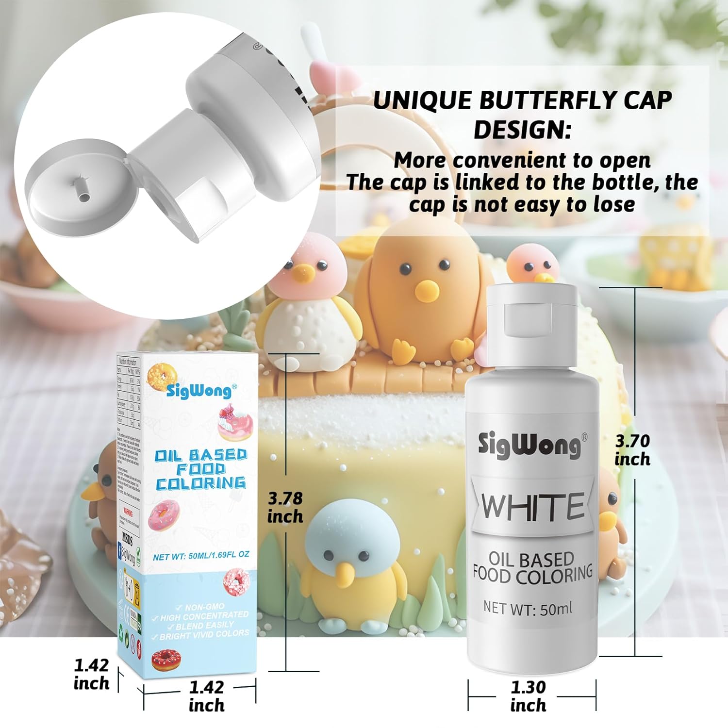 Oil Based Food Coloring for Chocolate - 50ml White Upgraded Edible Oil Based Food Dye for Cake Decorating, Icing Frosting, Fondant, Baking, Candy Melts, Cookie, Meringues - 1.69 Fl.Oz Bottles