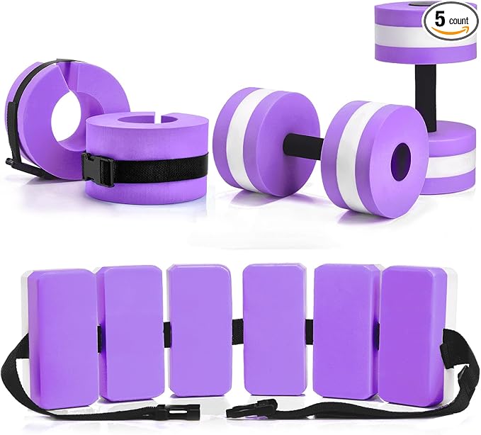 - Complete Package for Water Fitness: this water dumbbell set is a comprehensive package for your water workout regime, including 2 foam swim aquatic cuffs, 2 lightweight aquatic exercise dumbbells, and 1 swim belt, which ensures a full body workout, improving your overall fitness
